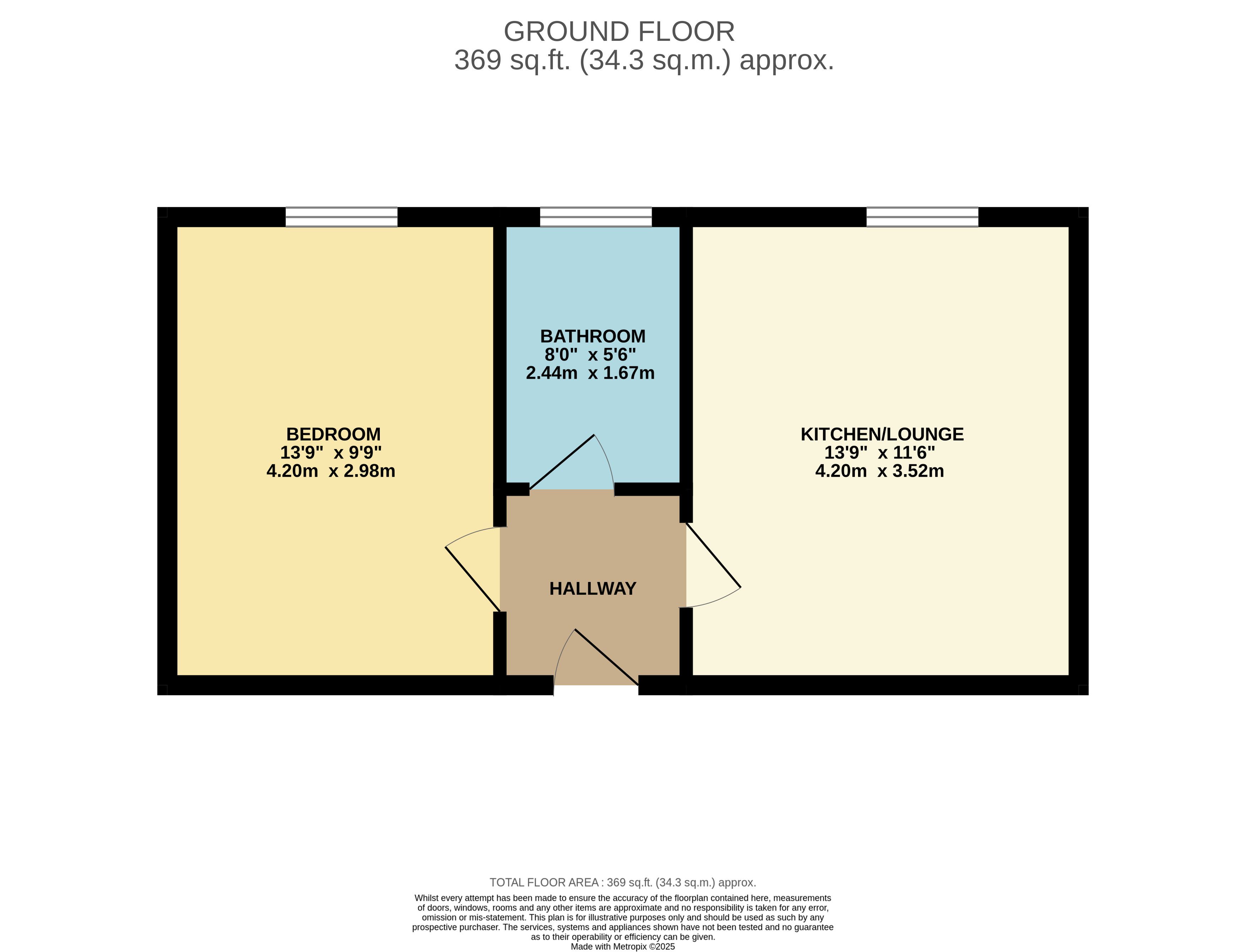 Comprising of an entrance hallway leading to an open living kitchen area, a bathroom, and a double bedroom.