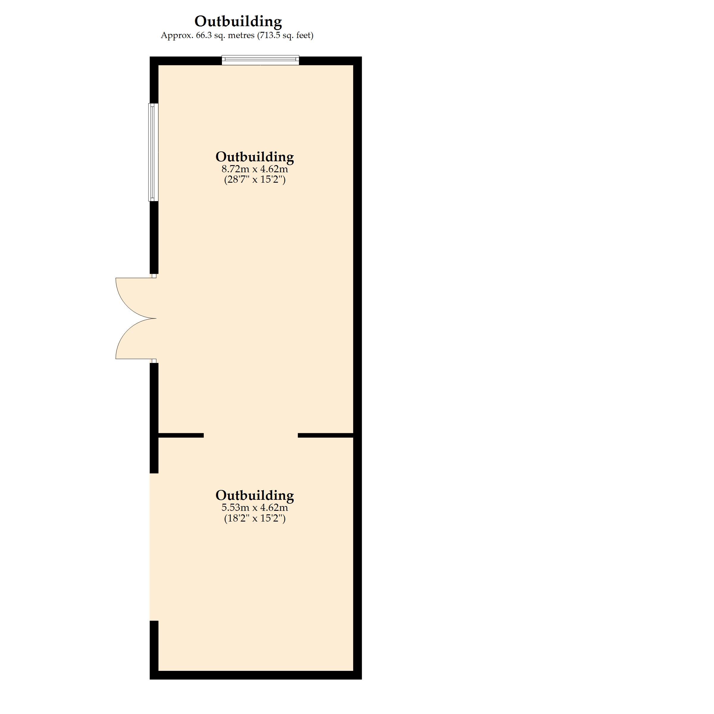 Outbuilding - 28'7" x 15'2" (8.72m x 4.62m) and 18'2" x 15'2" (5.53m x 4.62m)