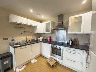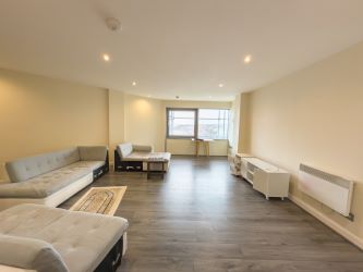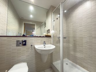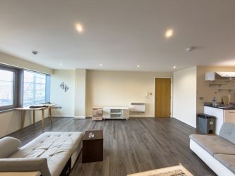 The apartment benefits from a generous open-plan living space, incorporating a large lounge, dining area and fitted kitchen. Floor-to-ceiling glazing allows for an abundance of natural light and enjoys elevated urban and riverside views.