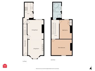 The accommodation comprises an entrance hall, a bright bay-fronted living room opening through to a spacious dining room, and a contemporary galley-style kitchen to the rear. To the first floor are two well-proportioned double bedrooms and a large family bathroom.