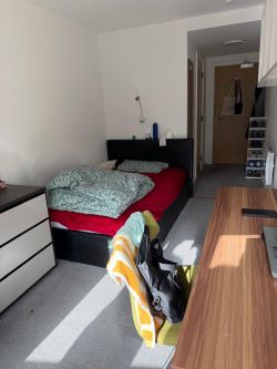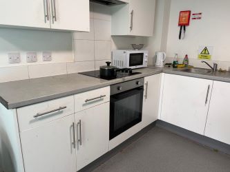This student studio apartment is currently let at £95 per week and is a studio room with a kitchen and an en suite. Also has access to communal living and utility areas.