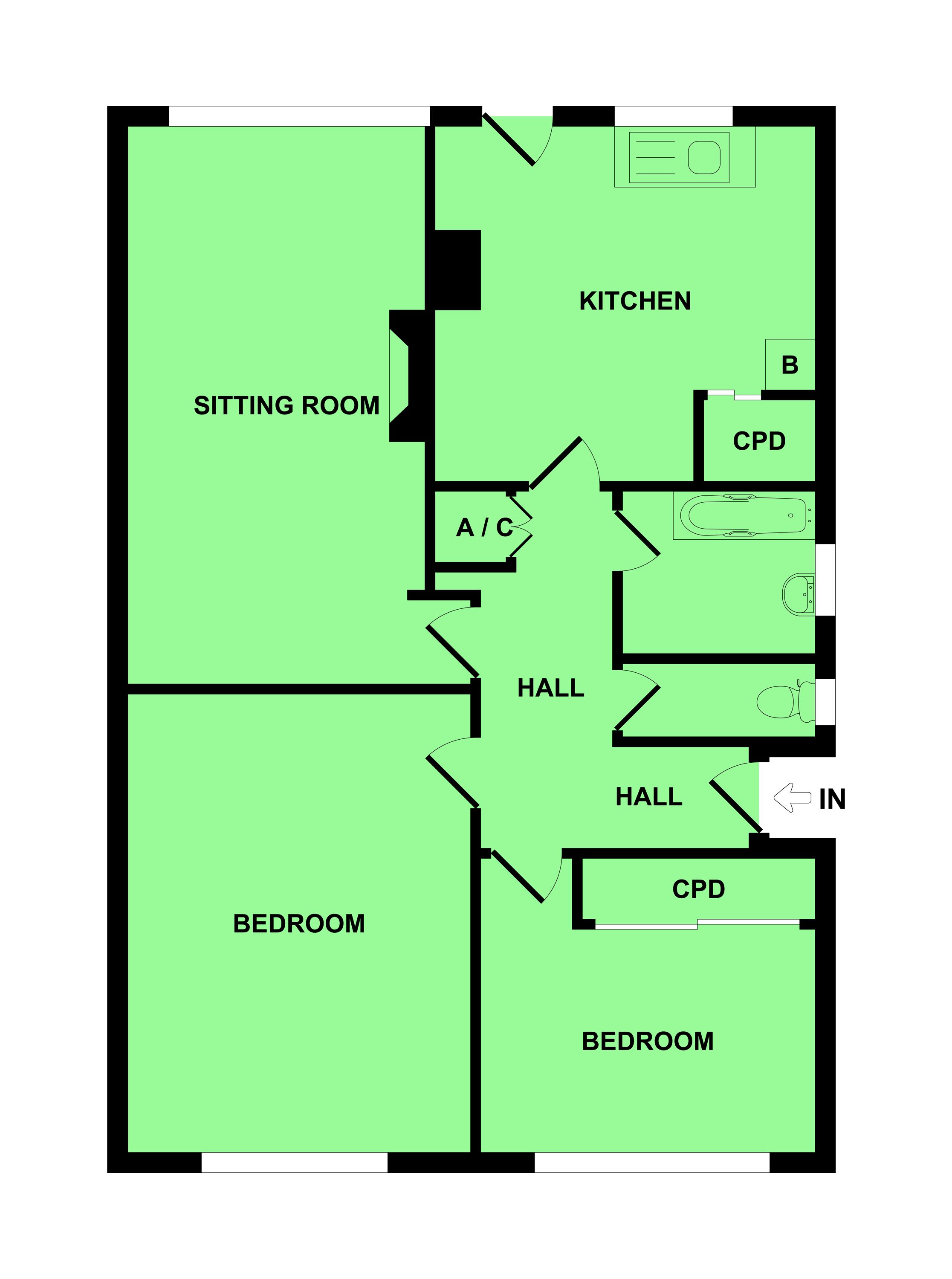 Accommodation Entrance hall, two bedrooms, wc, bathroom, sitting room, kitchen