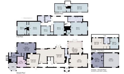 The accommodation includes five reception rooms, kitchen, utility, w.c. with five first floor bedrooms, two shower rooms, a bathroom and on the second floor two further bedrooms. The detached annexe comprises a garage, kitchen, living room, bedroom and a bathroom. The total floor area is over 4,800sq ft. The gardens extend to 1.28 acres of gardens. The accommodation has been sympathetically restored.