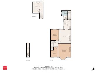 There is an entrance leading to a hallway with stairs to the first floor. From the landing you can access all three bedrooms and the living room. The living room then leads to the kitchen and bathroom and has access via some stairs to the basement space.