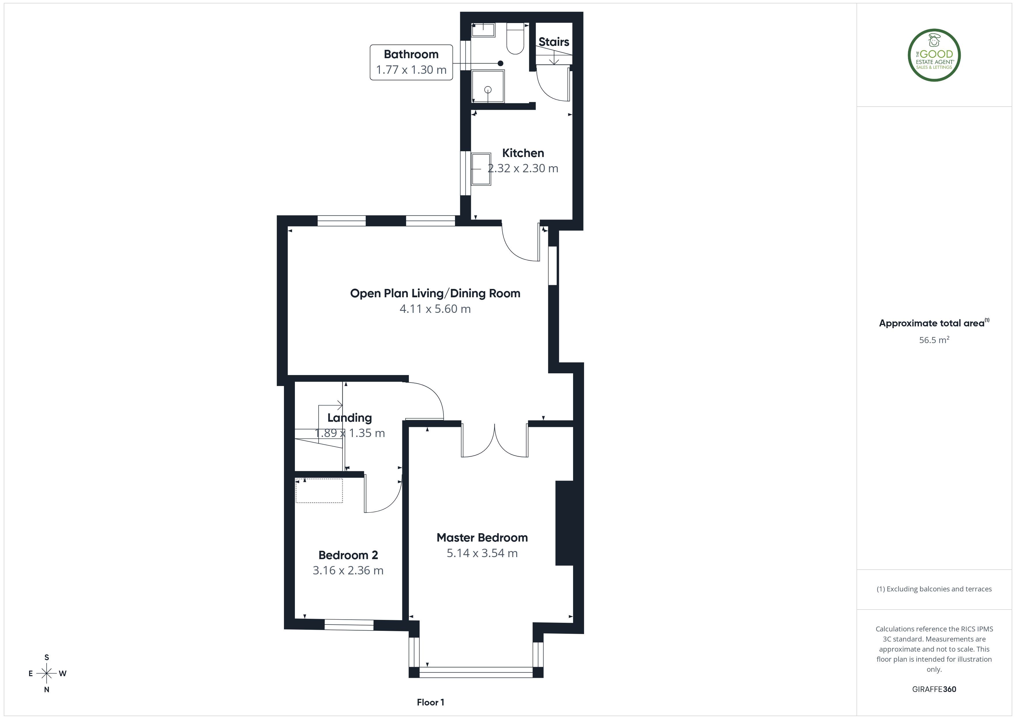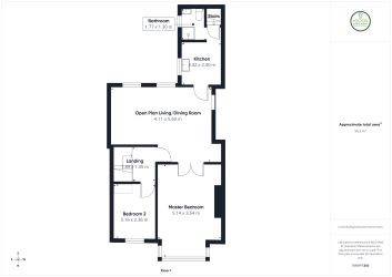 The property briefly comprises a private entrance with staircase leading to the first floor, opening into a spacious open-plan living and dining area with ample natural light. There is a separate fitted kitchen, two bedrooms including a generously sized principal bedroom with bay window, and a shower room/WC.
