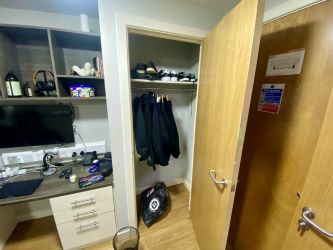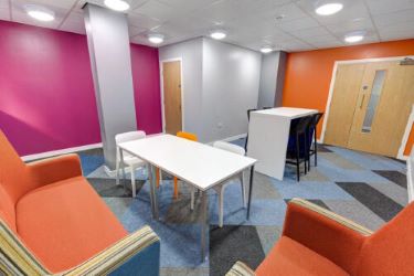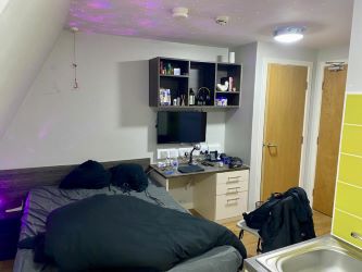 The property comprises a self-contained studio layout, including a sleeping/living area, compact kitchenette, and separate shower room. The building benefits from a range of on-site amenities, including communal lounge/study areas and a gym, making it particularly attractive to tenants.