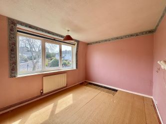 Two bedroom, first-floor leasehold flat located in Truro. The property is situated near the hospital, train station, and local amenities. The accommodation consists of a living room, kitchen/diner, two bedrooms, and a bathroom. Outside, the property includes a garden to the front and side. The interior requires modernisation throughout.
