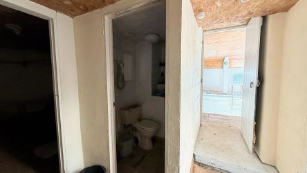 Located in Cotleigh, Honiton, Devon, the property is being sold with vacant possession and benefits from three separate entrances: one via the garage, one from the pool area, and one from the main entrance. There are steps leading from the garage to the upper floor, providing access to the first floor. The property requires full renovation throughout and, subject to the necessary planning and consents, offers potential for residential use, commercial use, or a combination of both.