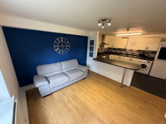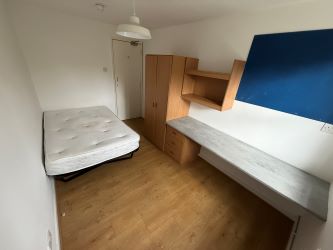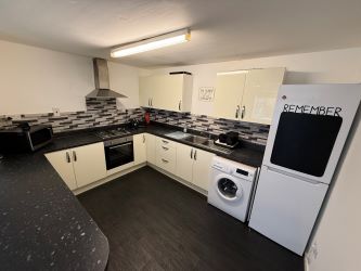 The apartment is accessed via a key code to enter the building and then has a separate lock to enter the property. It has four spacious, almost identical bedrooms to the left of the hallway with a large open plan fitted kitchen/living space to the righthand side along with a three piece bathroom suite.
