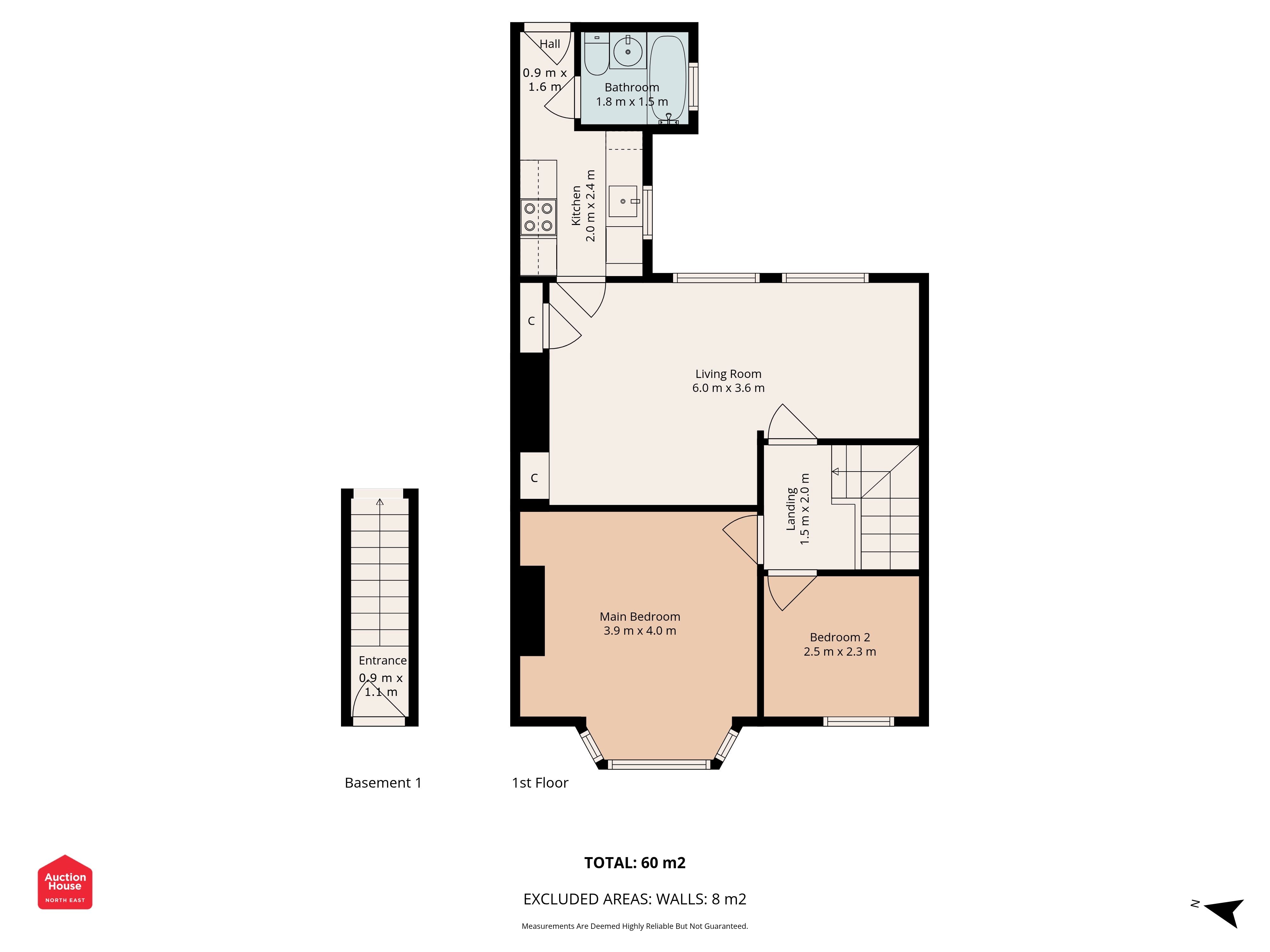 Total floor area approximately 60 m².