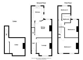The accommodation briefly comprises of entrance hall, two reception rooms currently used as a lounge and dining room, spacious kitchen, cellar, first floor landing, three bedrooms and family bathroom.
