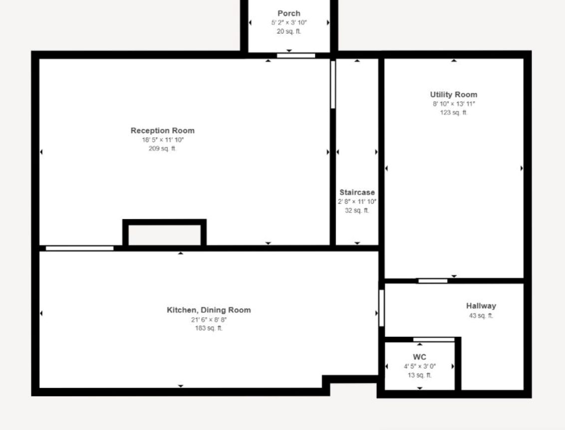 Ground Floor: Porch, Hall, Reception Room, Kitchen, Rear Lobby, WC, Utility Area/Dining Room.