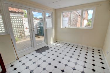 Window to the rear and radiator. Doors to the side leading out to the yard and rear garden.