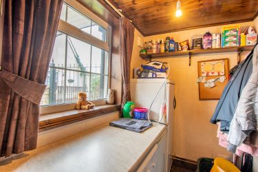 Window to side aspect, a range of base units with space and plumbing for washing machine, space for fridge freezer and radiator.