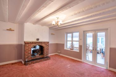 uPVC double glazed double doors to rear aspect leading to conservatory, open fireplace, beams to ceiling and radiator.