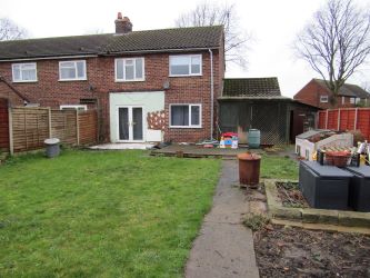 To the front is a lawned garden with driveway allowing off-road parking, wooden lean-to to the side of the property. To the rear is an enclosed garden mainly set to lawn with patio area and decking feature.