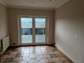 uPVc double glazed double doors opening to the rear of the property, continuation of tiled floor, two radiators and double doors to: