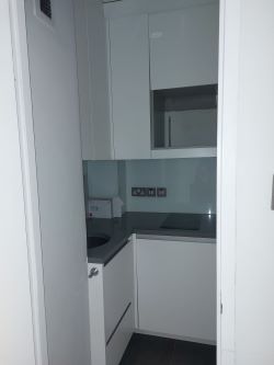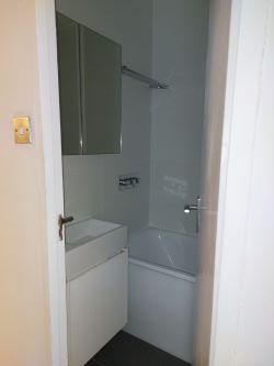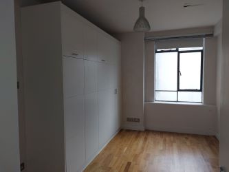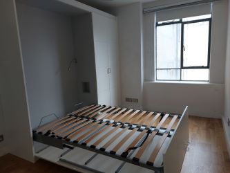 The apartment comprises a studio room with a recessed sleeping area and fold away double bed and a recently installed kitchen and bathroom.