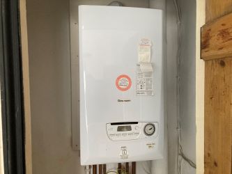 BATHROOM – 3m x 2.46m (maximum) Irregular shaped room with fitted bath, wash basin, toilet and cupboard incorporating wall mounted gas combination boiler.