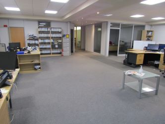 A single storey light industrial unit with entrance door to the front from the car park into open plan office space with 2 cellular office spaces, meeting room, file storage area, server room, kitchenette, three w.c facilities and rear loading bay.