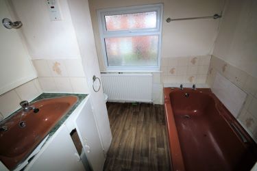 Bathroom With bath, wash hand basin and low level w.c. Window to the rear.