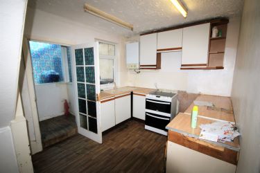 Kitchen 12'10 x 9' - Base and eye level units. Work surface. Cooker point. Window to rear. Stairs to first floor.