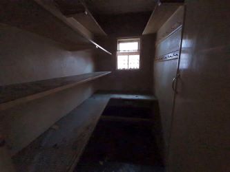 Pantry: with single glazed window to the side elevation, shelving and meat shelf.