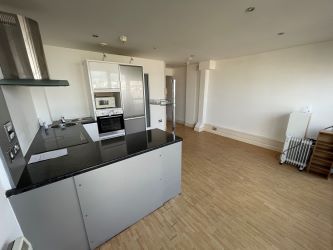 Open-Plan Lounge & Kitchen 15'3 x 14'5 Open-plan lounge and kitchen. Kitchen fitted with base units. Worktop. Sink with mixer tap. Oven and hob. Extractor. Spotlights. Windows and door.