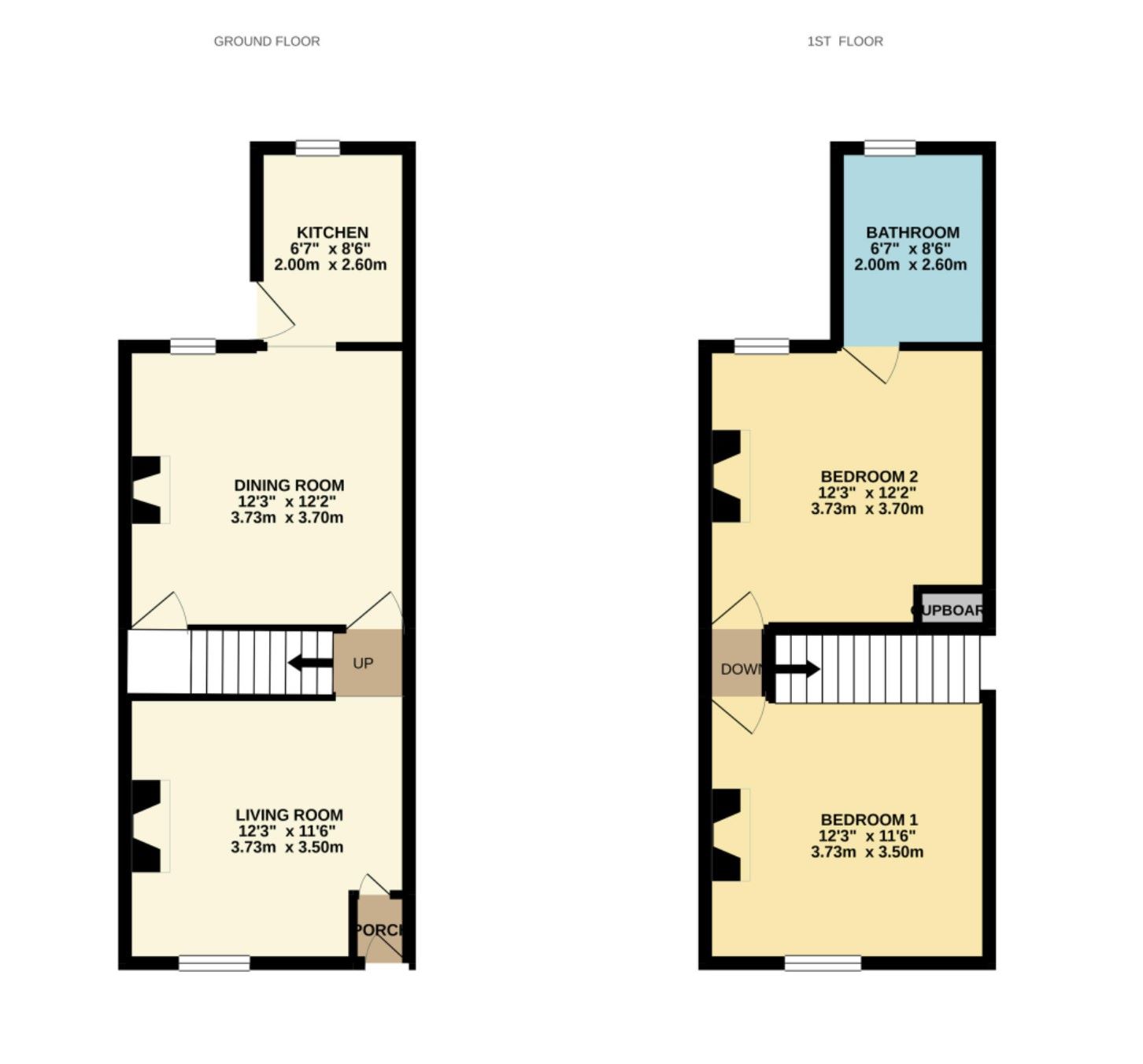 The property briefly comprises a living room, dining room and kitchen to the ground floor. To the first floor there is two double bedrooms and a bathroom. Externally there is a rear yard.