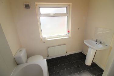 Bathroom Having a rear facing double glazed window and a modern white suite, tiled splash-backs and a radiator.
