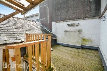 The property needs some renovation work however benefits from private outdoor space, a share of the freehold and the remainder of a long 999-year lease. The property is accessed via the communal hallway which leads into the spacious living room, with large, double-glazed windows allowing plenty of light and on into the rear hall. There is family shower room which benefits from an enclosed shower cubicle, hand basin, and w/c. The fitted kitchen has a range of matching wall and base units and leads onto the master bedroom, with alcove storage and electric heating. The decked area is accessed from the rear hall, providing private access up to the decked area above the bathroom.