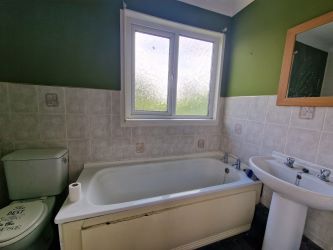 Family Bathroom: With suite comprising low level flush w.c., pedestal wash hand basin, panelled bath.