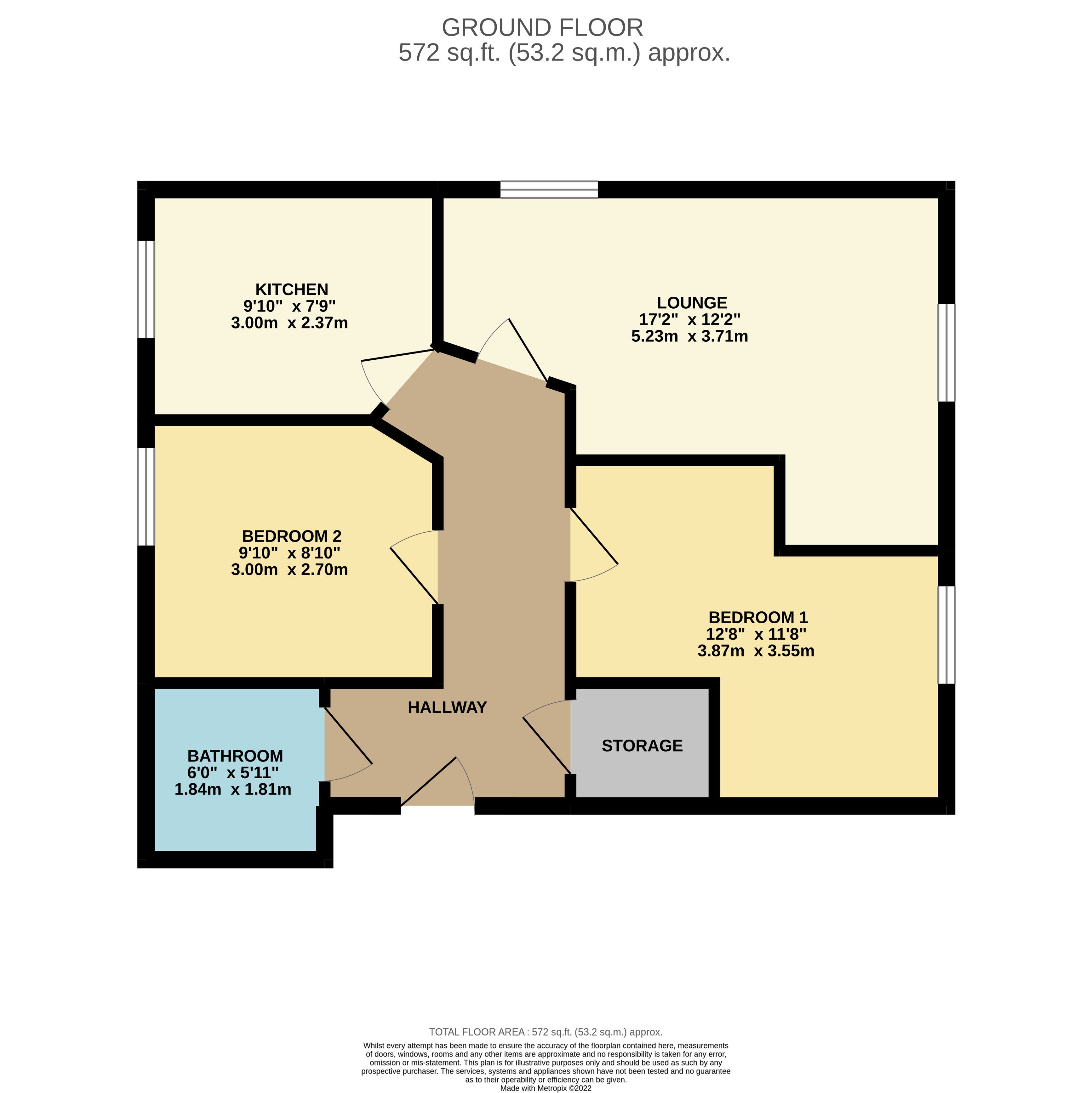 Comprising of a spacious entrance hallway, a bathroom, storage cupboard, two double bedrooms, a fully equipped kitchen, and a spacious lounge.