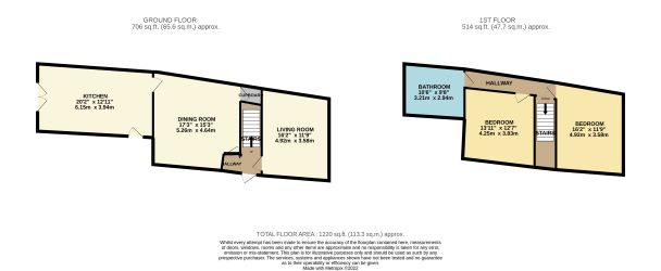 The property briefly comprises a kitchen, dining room, and living room on the ground floor. On the first floor are two large bedrooms and a bathroom. Externally the property benefits from a large rear garden.