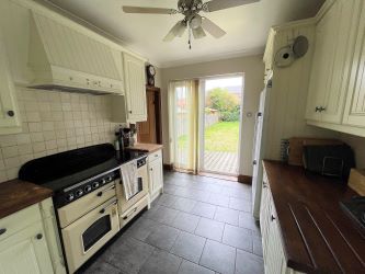 Kitchen 12'10 x 9'2 Fitted with a range of base and eye level units.  Worktop.  Belfast sink.  Double glazed window to the side.  Double glazed french doors to the rear garden.