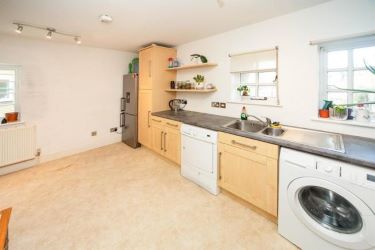 Fitted kitchen with a range of wall and base units, windows to the rear and side, door to the lounge, 1 1/2 stainless steel sink/drainer, work surfaces, electric oven, electric hob, cooker hood, plumbing and space for a washing machine and dishwasher, space for a fridge/freezer, central heating boiler and radiator.