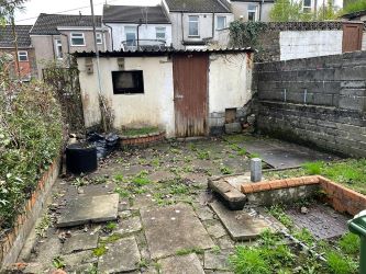 Outside Garden to the rear with solid built store with lane access.