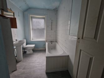 uPVC double glazed window to the rear elevation, low level flush w.c., pedestal wash hand basin, panelled bath, radiator, combination boiler.