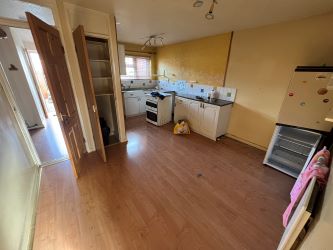 Set over three floors in a quiet cul-de-sac is this four-bedroom, two-bathroom house with a driveway that requires renovation throughout.