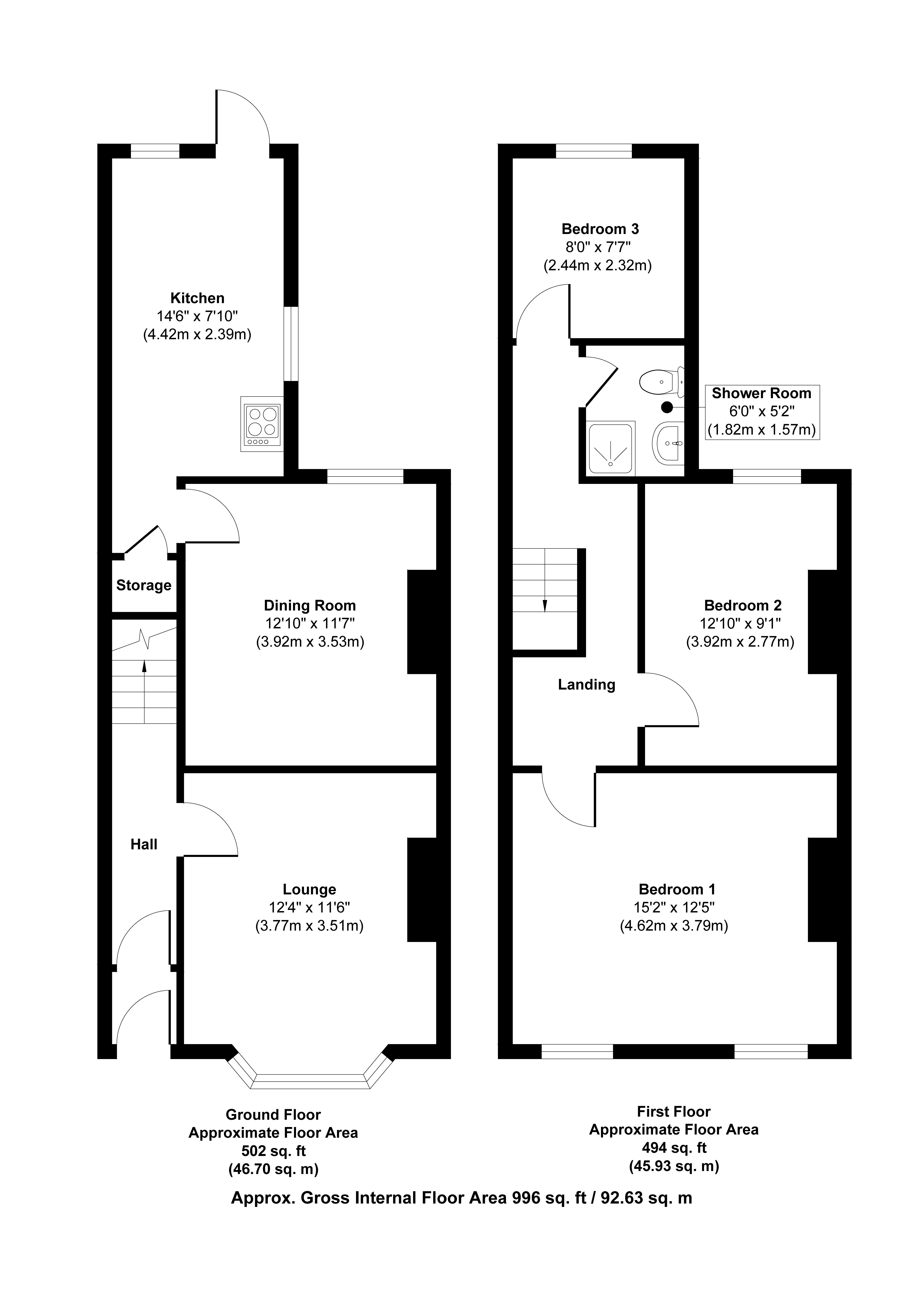 Bedroom Two: 3.89m x 2.79m (12' 9 x 9' 2)