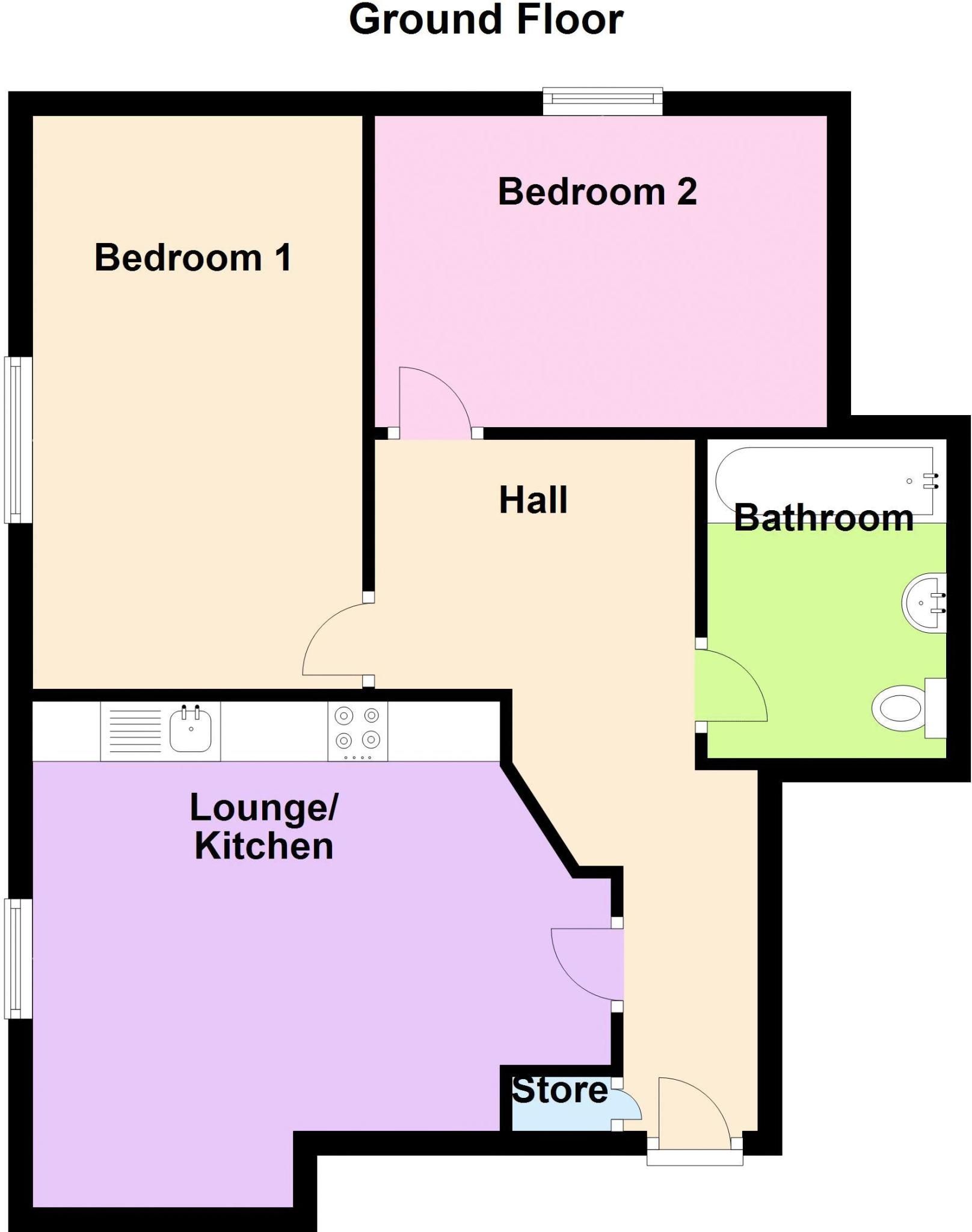 ENTRANCE PORCH, HALLWAY, FLAT ENTRANCE HALLWAY, OPEN PLAN LOUNGE DINER KITCHEN, HALLWAY TO BEDROOMS ONE, BEDROOM TWO, BATHROOM, RESIDENTS PARKING, VISITOR PARKING AND COMMUNAL GARDENS