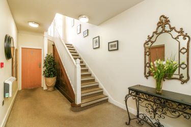 A secure entrance door opens to the hallway which has stairs to all floors.