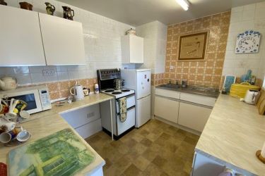 ENTRANCE HALLWAY, TWO STORE ROOMS, KITCHEN, BATHROOM, LIVING ROOM SLIDING PARTITION TO DINING ROOM, ENCLOSED GLAZED BALCONY, DOUBLE BEDROOM. LIFT ACCESS & DOUBLE GLAZING.