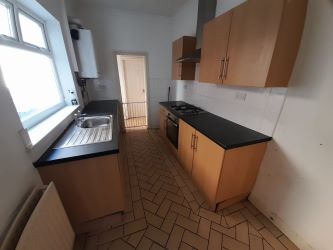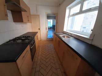 UPVC double glazed window to the side elevation. Fitted kitchen comprising of base, drawer and wall units with complimentary worksurface, inset stainless steel sink with drainer, electric oven and four ring gas hob with extractor over, space for fridge freezer, provision for automatic washing machine, radiator. Access to under stairs storage and doorway to: