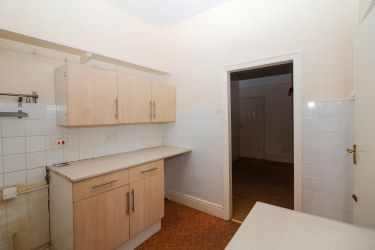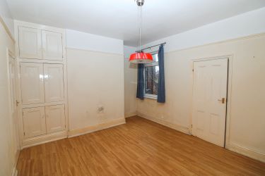 A spacious room with access to the cellar, built in alcove cupboard , a radiator , rear facing double glazed window and with laminate flooring and picture rail