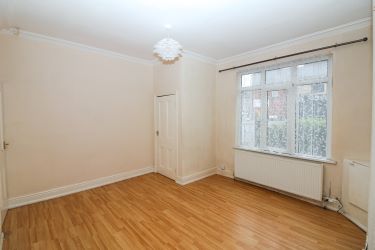 A good size front facing lounge with a large double glazed window . A radiator , laminate flooring and with original ceiling cornice and four panel doors.