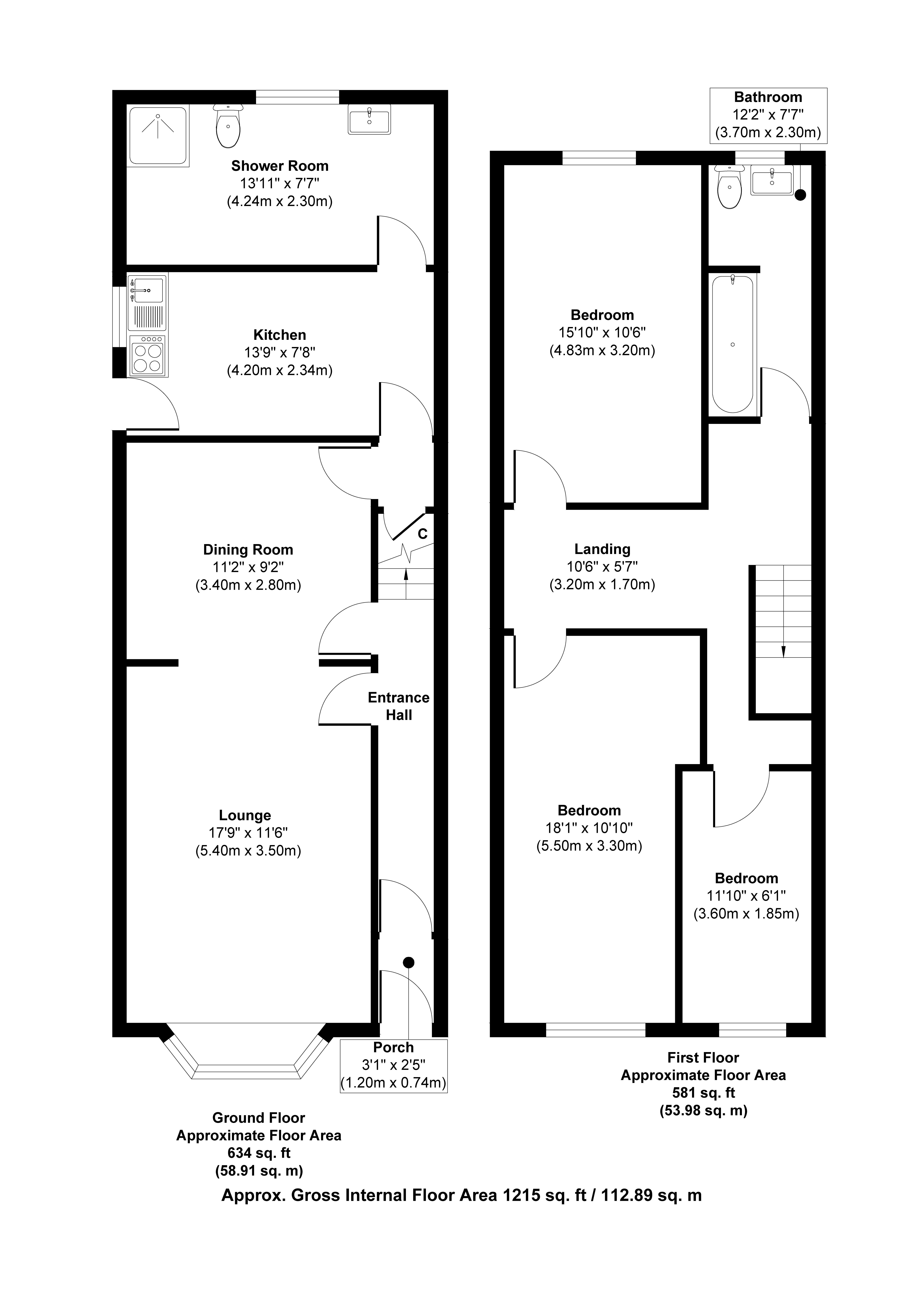 Bedroom Two: 3.35m x 3.05m (11'0 x 10'0) UPVC double glazed window, radiator.