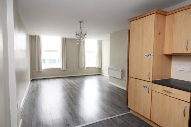 Open plan Living / Kitchen: Living space with two large windows, electric heater and laminate flooring. Kitchen fitted with base and wall units including worktops with sink, electric oven and hob, extractor, fridge freezer and dishwashing machine.