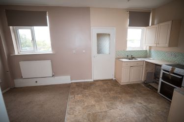 Kitchen/Diner 5.30 x 3.02 - A large kitchen and dining space with two rear facing double glazed windows , radiator , and fitted units , work surfaces with stainless steel sink and with an electric cooker point.
