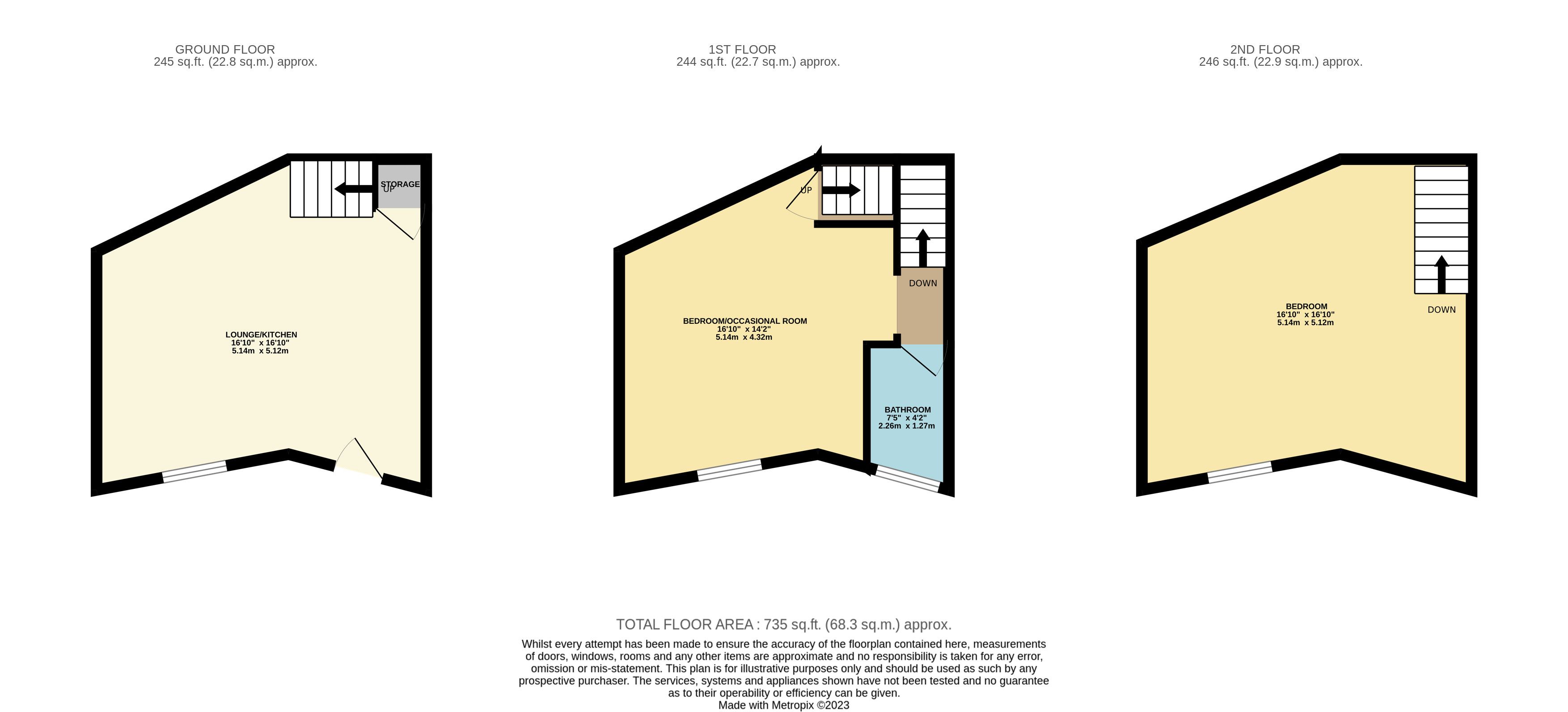 This property forms part of a terrace house that has been split. It comprises of a lounge/kitchen, a bathroom, a first bedroom/occasional room, and an attic bedroom.